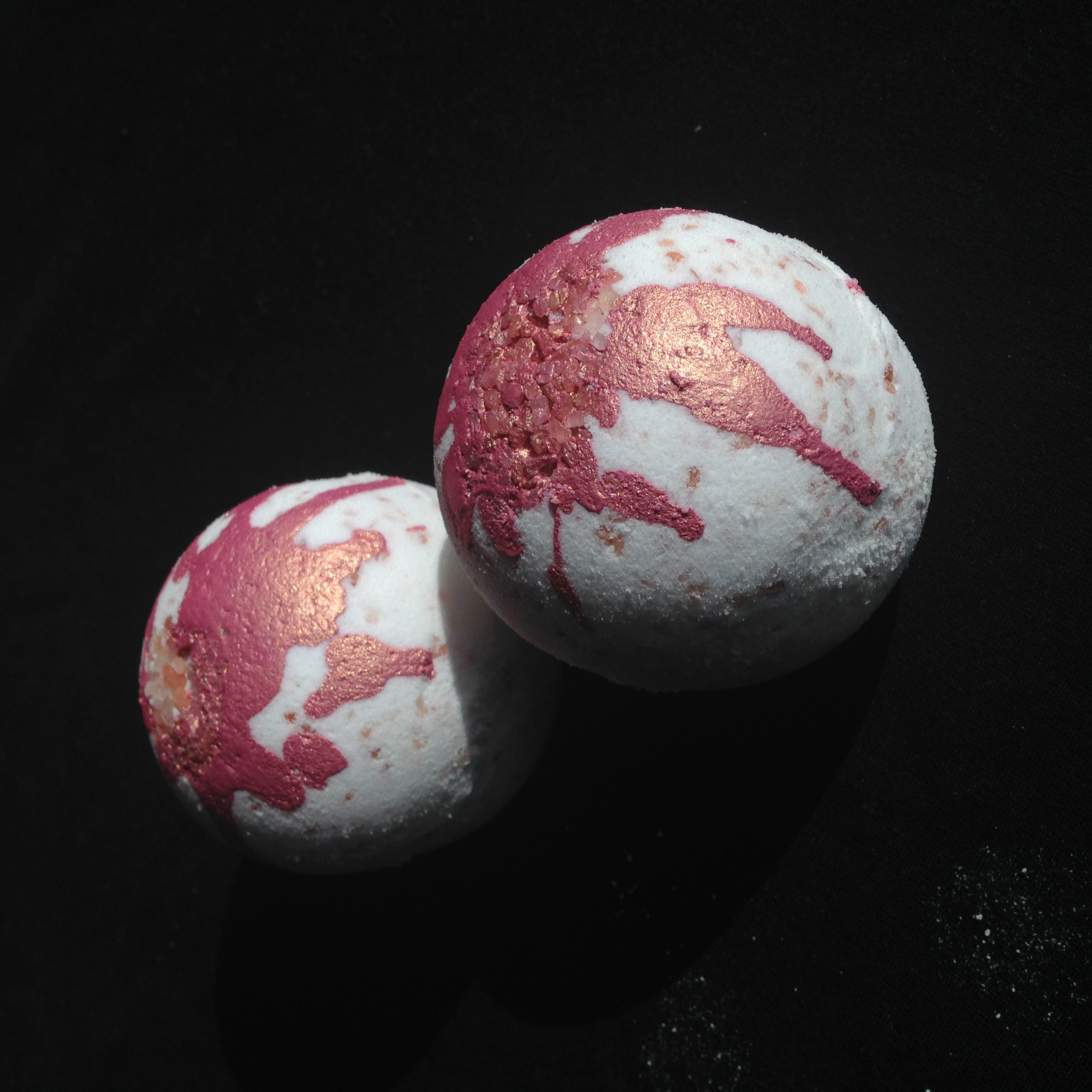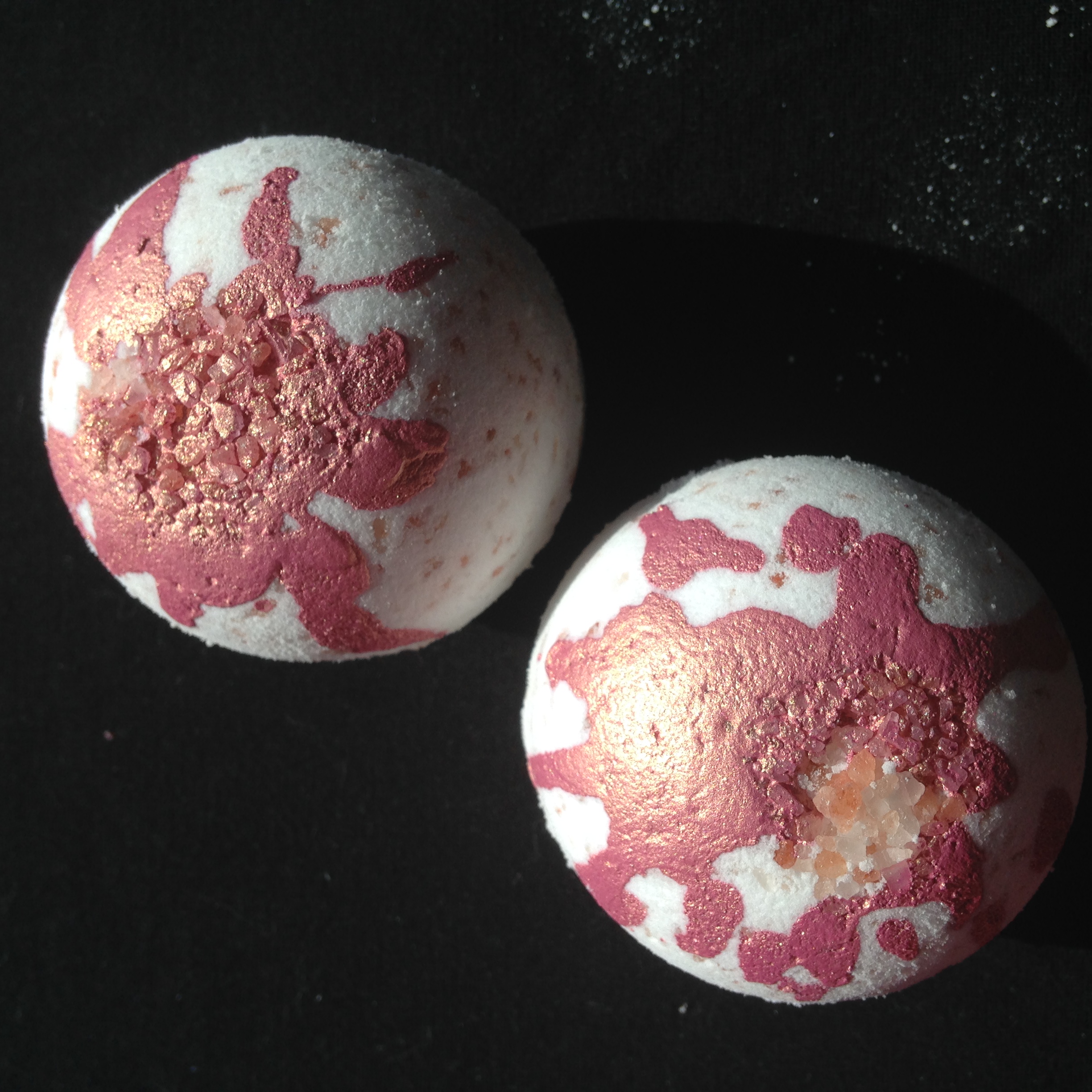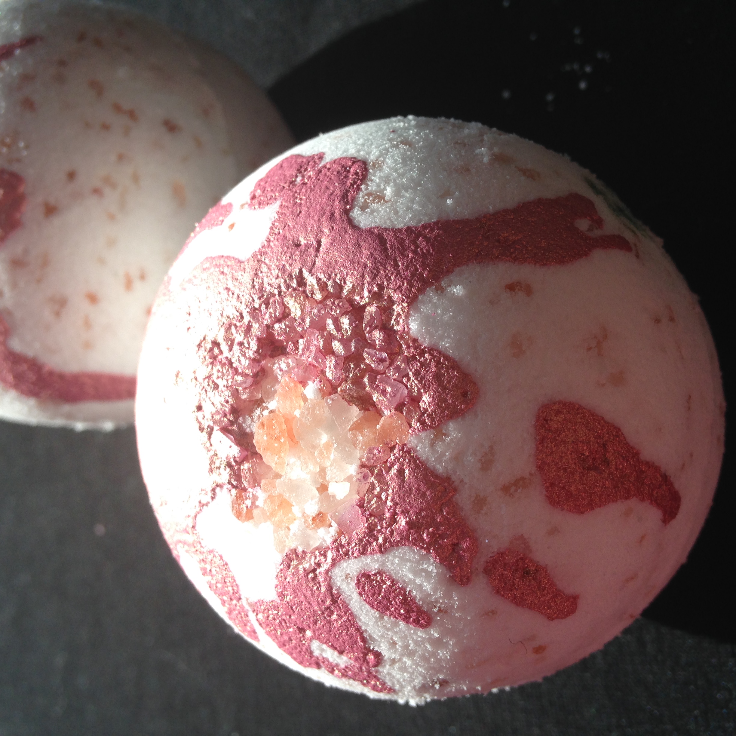 This luxurious bath bomb is made with moisturizing Shea Butter, Himalayan Pink Sea Salt, and scented with our Rose Quartz fragrance: crisp Rose and Bergamot, with notes of Orange Zest, Grapefruit, Jasmine, soft Sandalwood, and a touch of Musk.