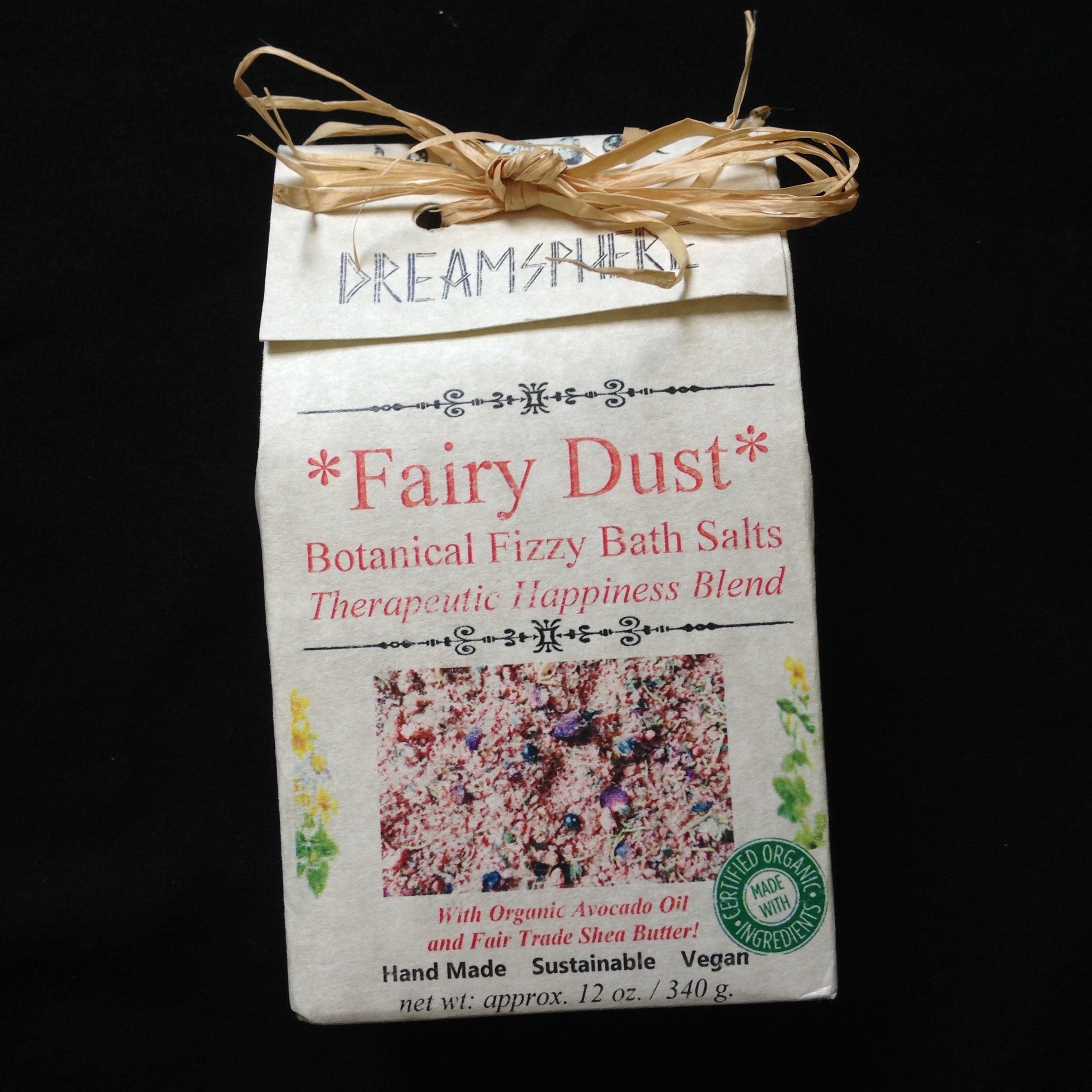 Botanical fizzy bath salts! AKA Fairy Dust! Sprinkle in hot bath water for a fizzy therapeutic bath. Made with our custom blend of essential oils for uplifting the mood!