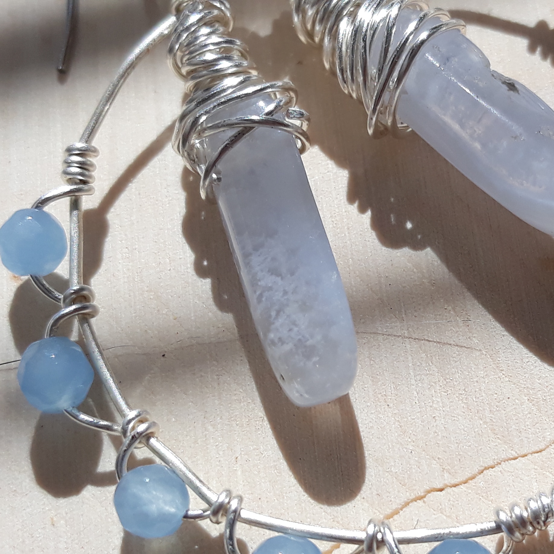 Blue Lace Agate & Aquamarine faceted bead - handmade wire wrap earrings