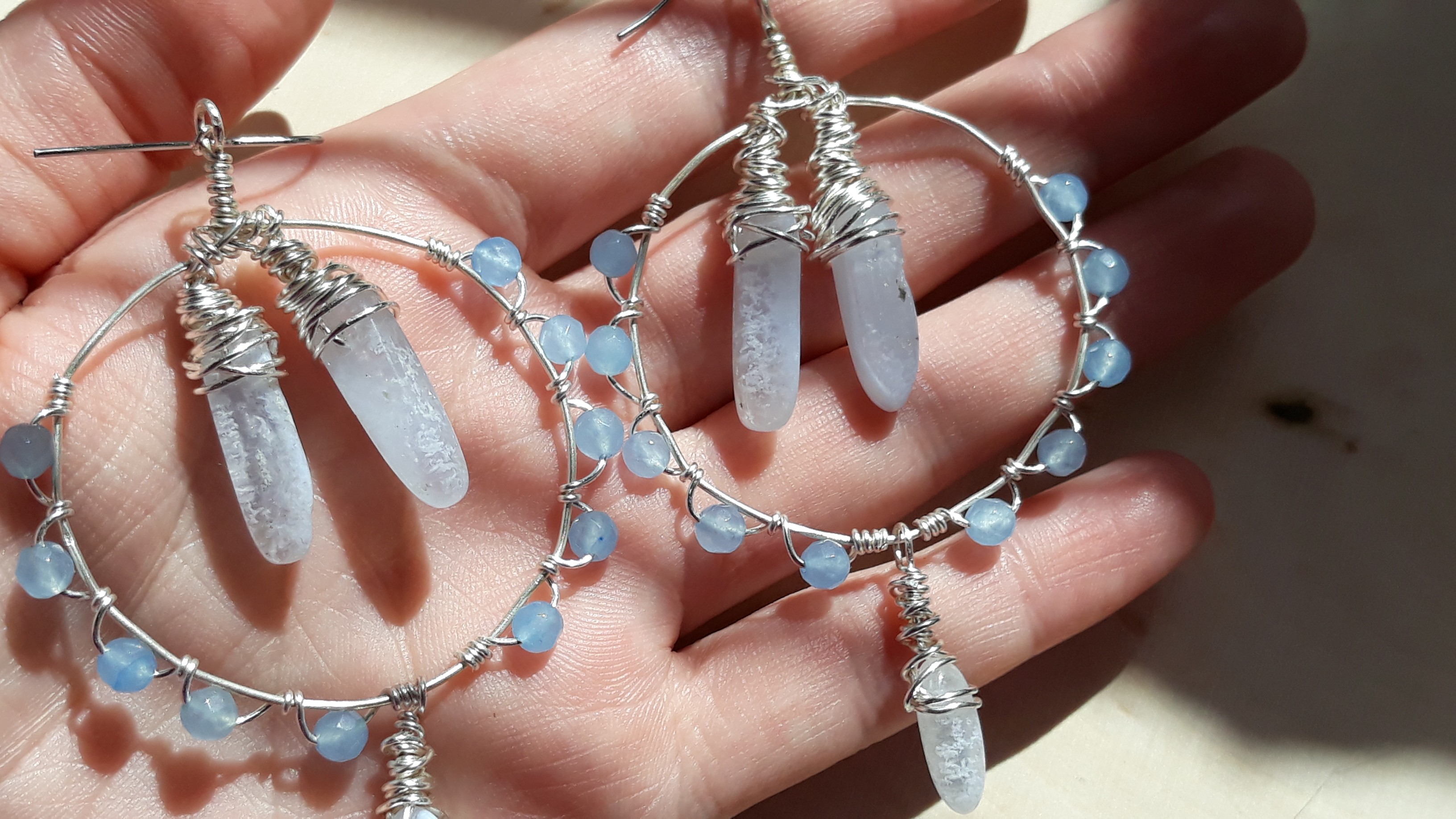 Handmade on surgical steel ear wires. Tarnish resistant silver.