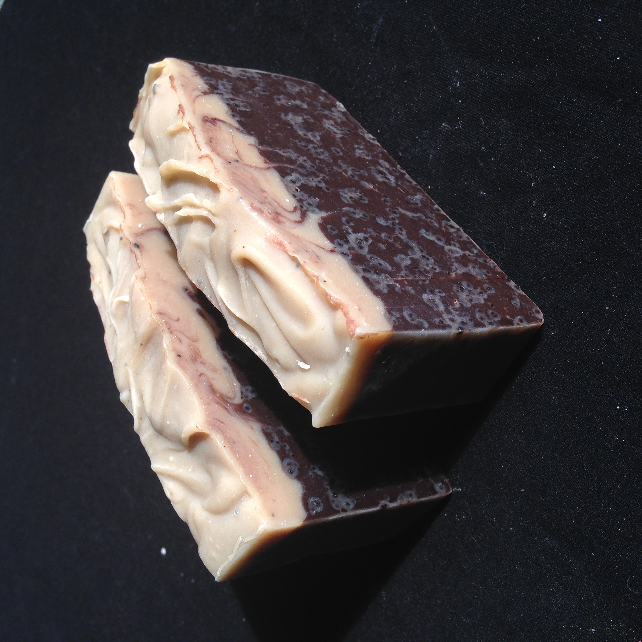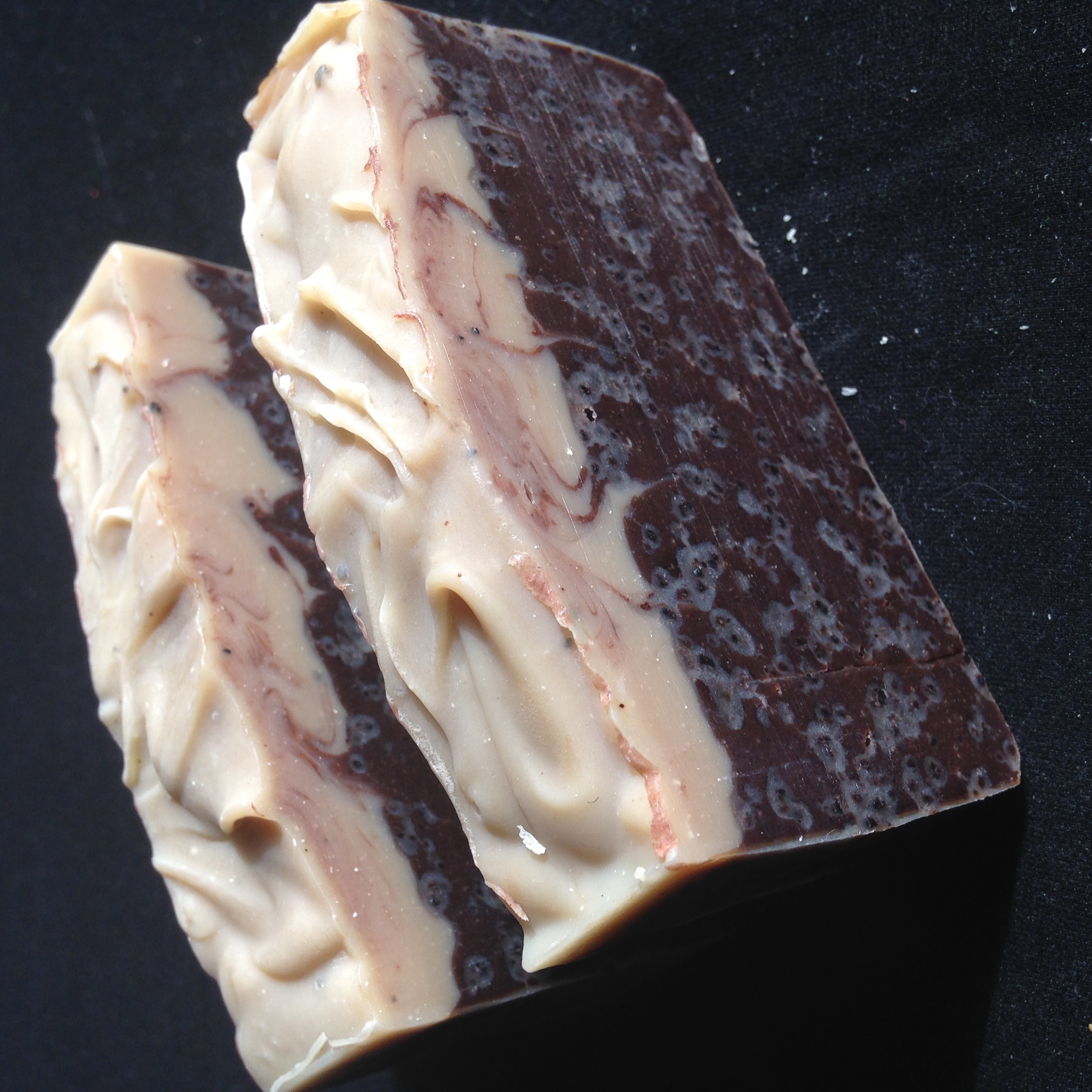 Recipe #2 soap, made with fresh brewed local coffee! Full of caffeine for maximum skin health and antioxidant rich cocoa powder.